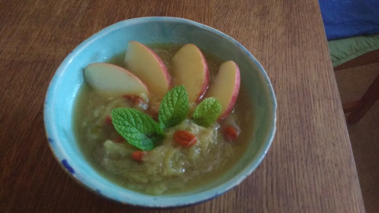 6. Be creative :):) – raw sauerkraut with strawberry yogurt, apple rice (apple puree with cooked rice), fried spinach-soy schnitzel-onion-turnip-mixture
