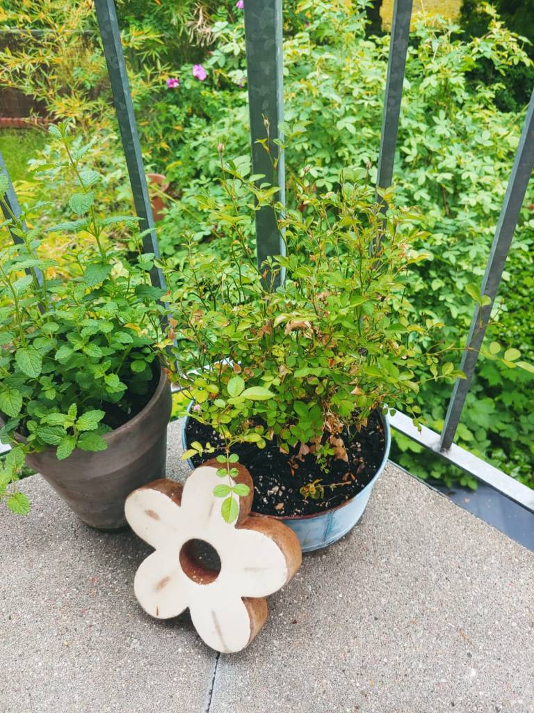 Die Eichhörnchen kamen wieder, aber tangierten die Rosen nicht – Minze mögen sie wohl nicht.