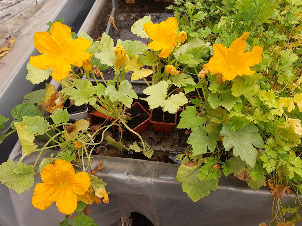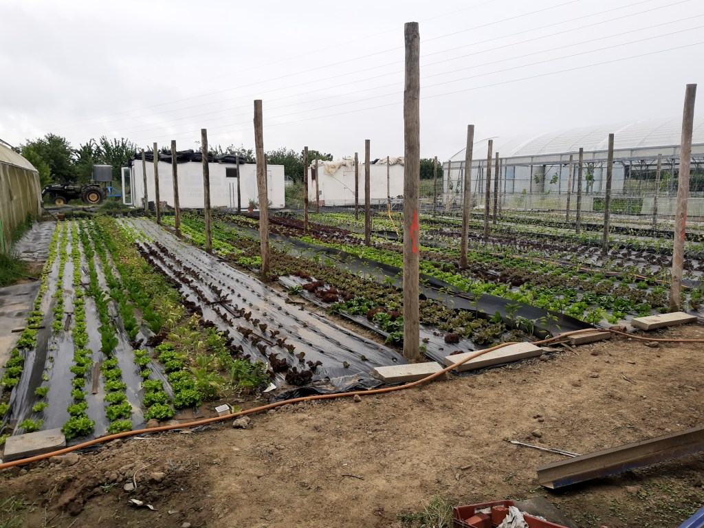 Auf wiederum einem Teil der Fläche lässt er Kleegras wachsen, was er mäht und als nährendes Mulchmaterial verkauft und womit er selbst düngt. Auf nochmal ca. 3 Hektar stehen Gewächshäuser, um Gemüsepflanzen anzuziehen – kleine Paprika-, Auberginen, Basilikumpflanzen und vieles mehr, das zunächst gesät, umgetopft und ausgepflanzt wird. Vieles davon wird jedoch direkt auf dem Markt verkauft, sodass die Kunden ihre eigenen Tomaten anbauen können. Eigentlich ist Ludovic, der Farmer, von Hause ‚maraîcher‘, frz. für Gemüsebauer.