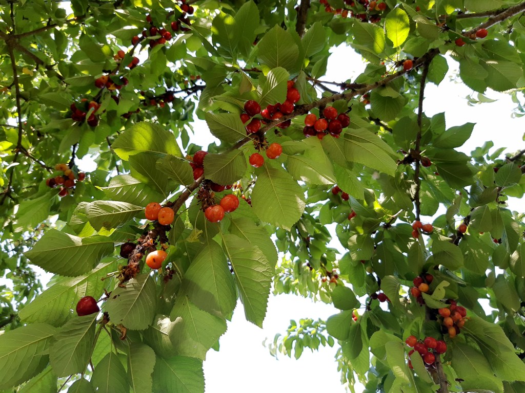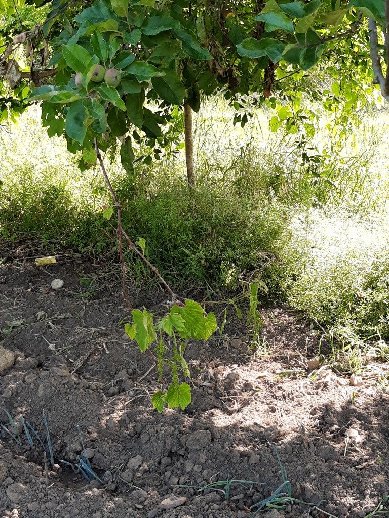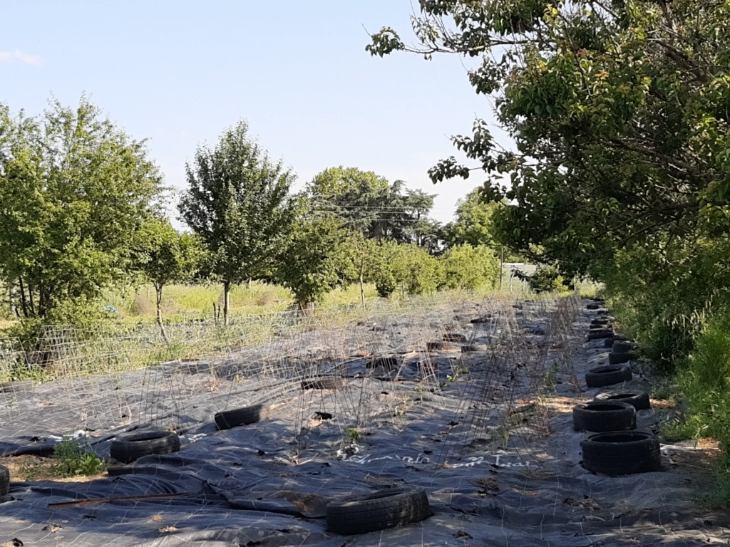 Ein offensichtlicher Vorteil großen Waldgarten, wie man einen Agroforst auch sehen könnte und wie er bei meiner Aufzählung der gewählten Arten wahrscheinlich schon aufgefallen ist, ist, dass es nach einiger Zeit wirklich viel zu ernten gibt: Maulbeeren, Kirschen, Birnen, Mandeln, Haselnüsse, Pfirsiche, Feigen. Es kann noch viel mehr sein. Bei Ludovic wuchsen auch Beerensträucher zwischen den Bäumen. Leider wurden sie überwuchert von Klebkraut und Gräsern.