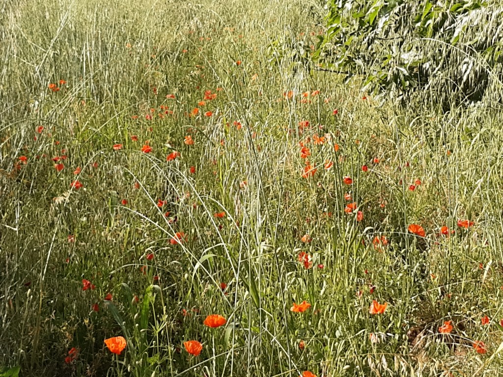 Ich als Freiwillige darf mich dazu auf dem Weg zum Feld über ca. einem halben Dutzend Eidechsen erfreuen, die vor mir flüchten als auch den Bläulingen und Kohlweißlingen, die sich auf den Kornblumen und dem Mohn niederlassen.